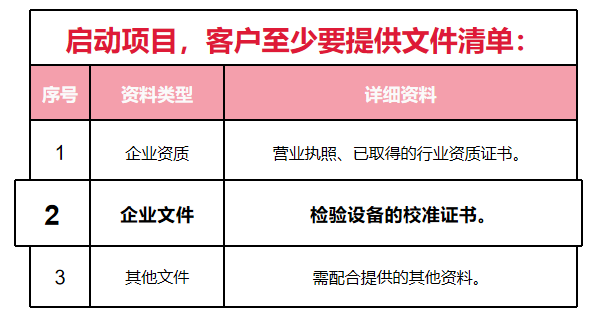 企业至少提供文件清单