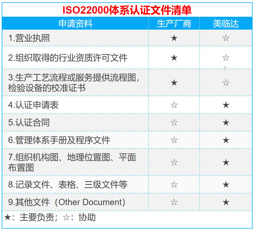 美临达专业办理ISO22000食品安全管理体系认证。