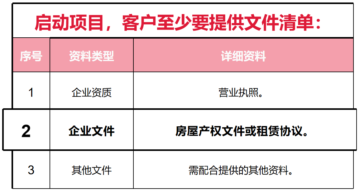 企业至少提供文件清单